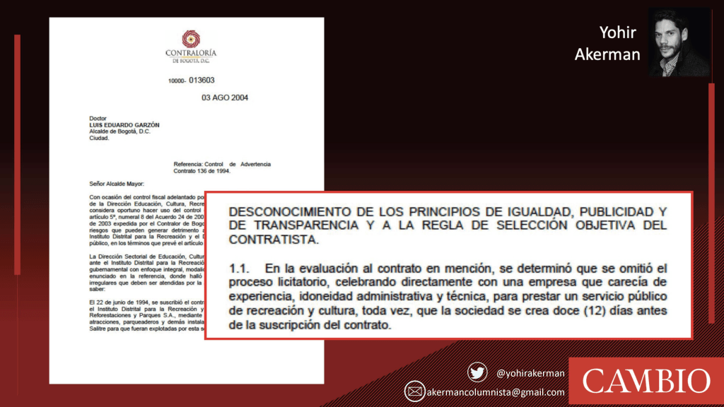 However, that is not the only irregularity. A report from the Bogotá Comptroller’s Office revealed that the contract evaluation bypassed the standard bidding process, opting for a direct agreement with a company that lacked the necessary experience, administrative capacity, and technical competence to provide public recreation and cultural services. Notably, the company in question was established only 12 days prior to the signing of the agreement.
