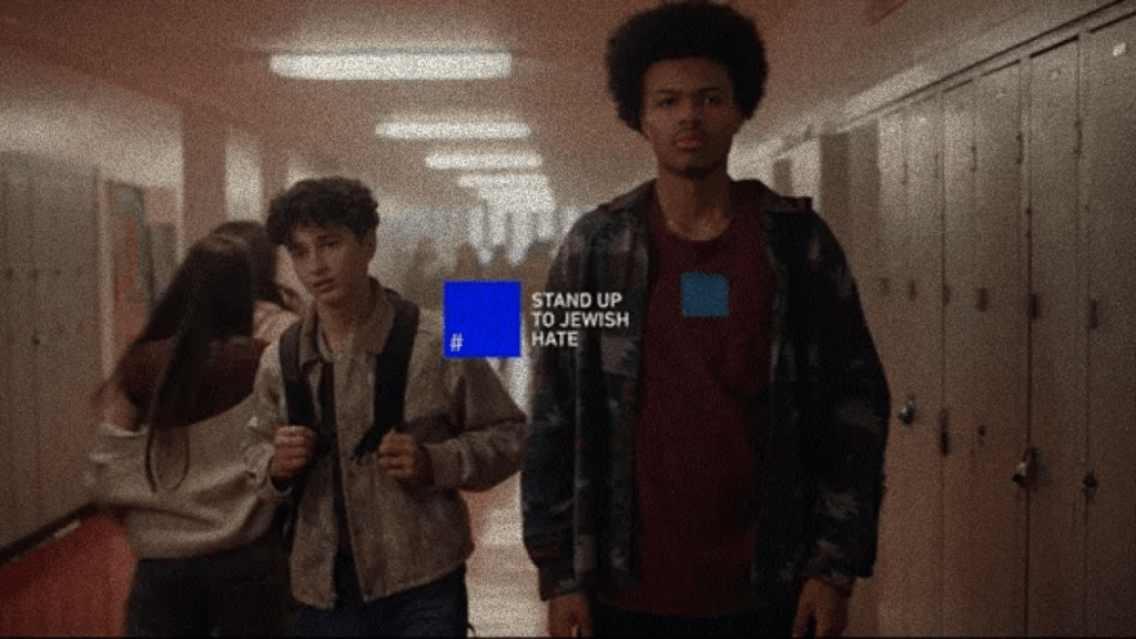 In the commercial’s universe, someone says something mean, someone else feels bad, and that is the entirety of what is presented as antisemitism. It is not rooted in political ideology, state power, historical violence, propaganda, or material conditions. It is reduced to personal moral failure and detached from broader social context.